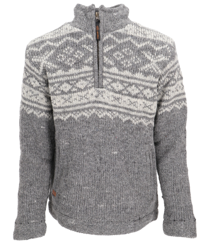 Der Wollpullover „Troyer“ ist der ideale Begleiter für kalte Herbst- und Wintertage. Hergestellt aus hochwertiger Schurwolle und mit einem weichen Fleecefutter versehen, hält er angenehm warm und sorgt für ein kuscheliges Tragegefühl. Der hohe Stehkragen und die seitlichen Taschen sind mit einem praktischen Reißverschluss ausgestattet. Dank seiner normalen Passform und der hochwertigen Materialien ist er ein langlebiger Begleiter für die kalte Jahreszeit.